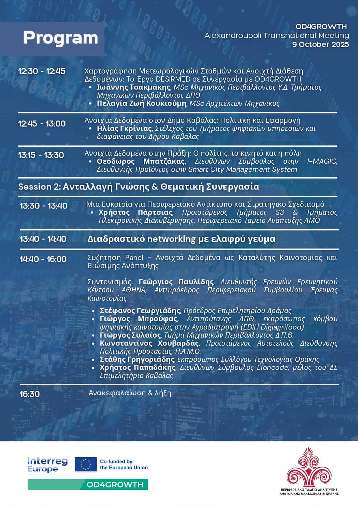- Πάνελ για τον περιφερειακό αντίκτυπο, networking & Q&A