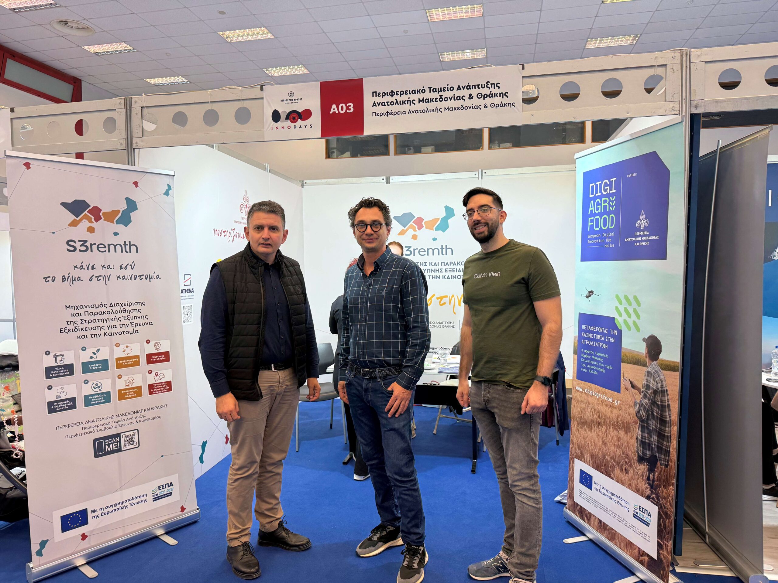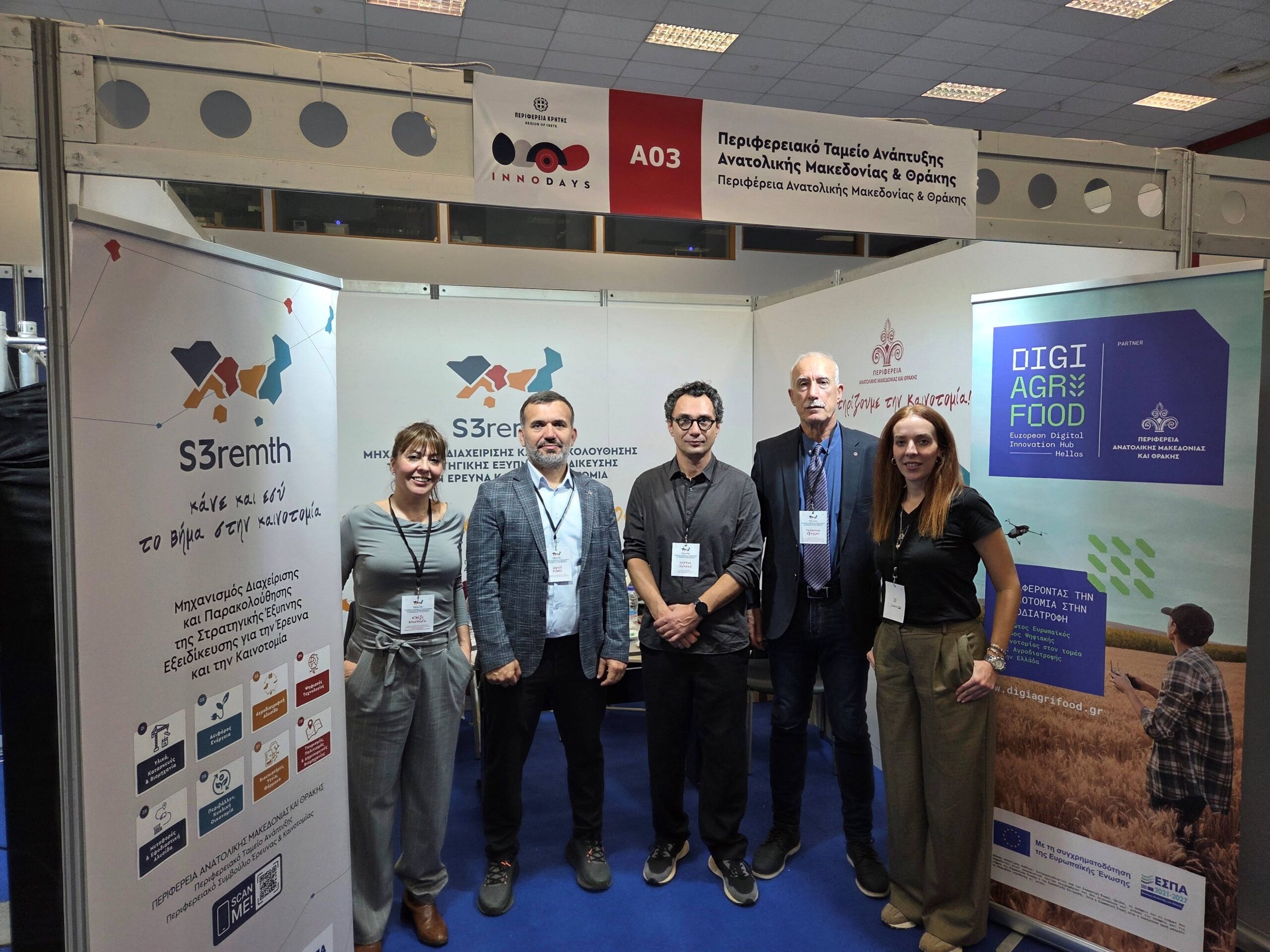 Η Περιφέρεια Ανατολικής Μακεδονίας και Θράκης, μέσω του Μηχανισμού Παρακολούθησης της Έρευνας και Επιχειρηματικότητας (S3remth) που συντονίζει το Περιφερειακό Ταμείο Ανάπτυξης ΑΜΘ, συμμετείχε με περίπτερο στη διοργάνωση της Περιφέρειας Κρήτης «Ημέρες Καινοτομίας – InnoDays», η οποία πραγματοποιήθηκε στο Ηράκλειο από τις 28 έως τις 30 Νοεμβρίου.